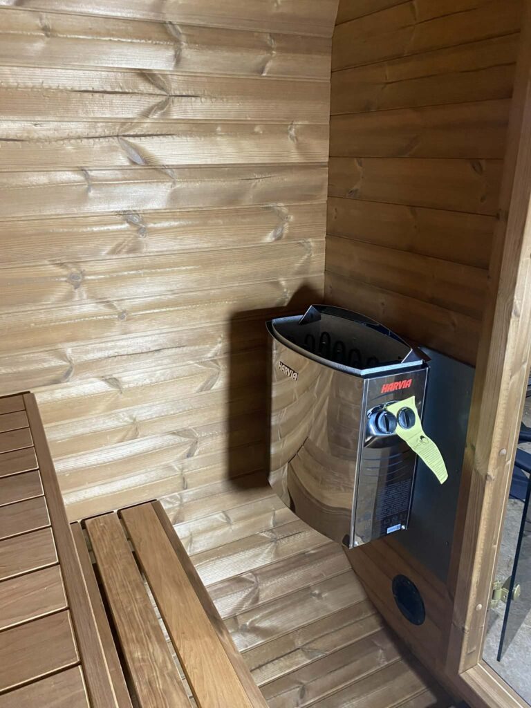 Sauna CUBE Measurements: Ø 205 cm x 160 cmCapacity: 2-4 peopleHeater: electrical Harvia BC60 6,0 KWOutside wall: 42 mmInside wall: 28 mmMaterial: ThermowoodSauna benchFloor grate8mm toughened bronze glass doorRoofing material used is bitumen shingles Blackalso available with glass front wall 4500 € Assembly and shipping in Ireland is not included. Contact us Contact us